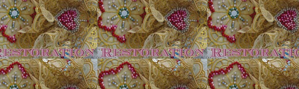 Restoration is a homage to the artists own childhood; one spent in awe of the imposing houses and grand historicism of his local area, Greenwich, and submerged in imaginary worlds of palaces and princesses, to transport him from the domestic reality of his own life. The physical act of handling materials, making, pinning, sewing or drawing, is the artist’s conscious attempt to draw himself back into those worlds – worlds whose innocence is now tainted by experience; a paradise forever lost.